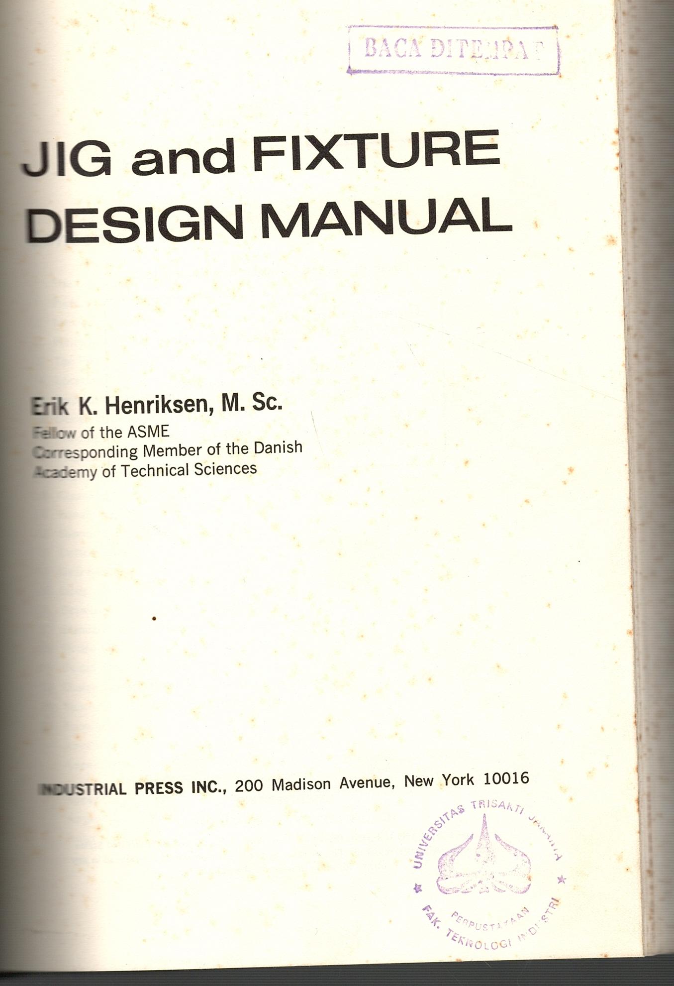 | Subyek | : | JIGS AND FIXTURES - DESIGN AND CONSTRUCTION - HANDBOOKS - MANUALS |